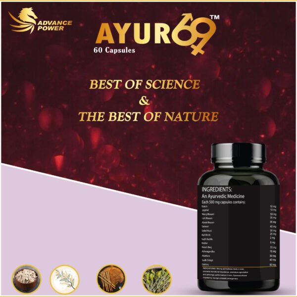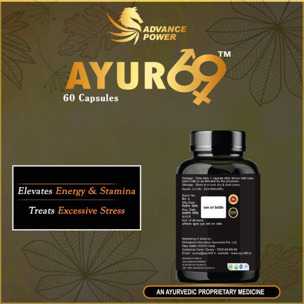 If you ever feeling low energy, frequent fatigue and performance dips then Ayur69 Capsule is for you. This Ayurvedic formula is made with traditional herbs like Ashwagandha, Safed Musli, Gokhru and mineral bhasmas to help your body to improve energy, stamina and vitality naturally. It’s not just work in one night; but when you use it consistent then you notice that you feel stronger, more focused and energetic and also you may experience better endurance, clearer mind and better performance.
