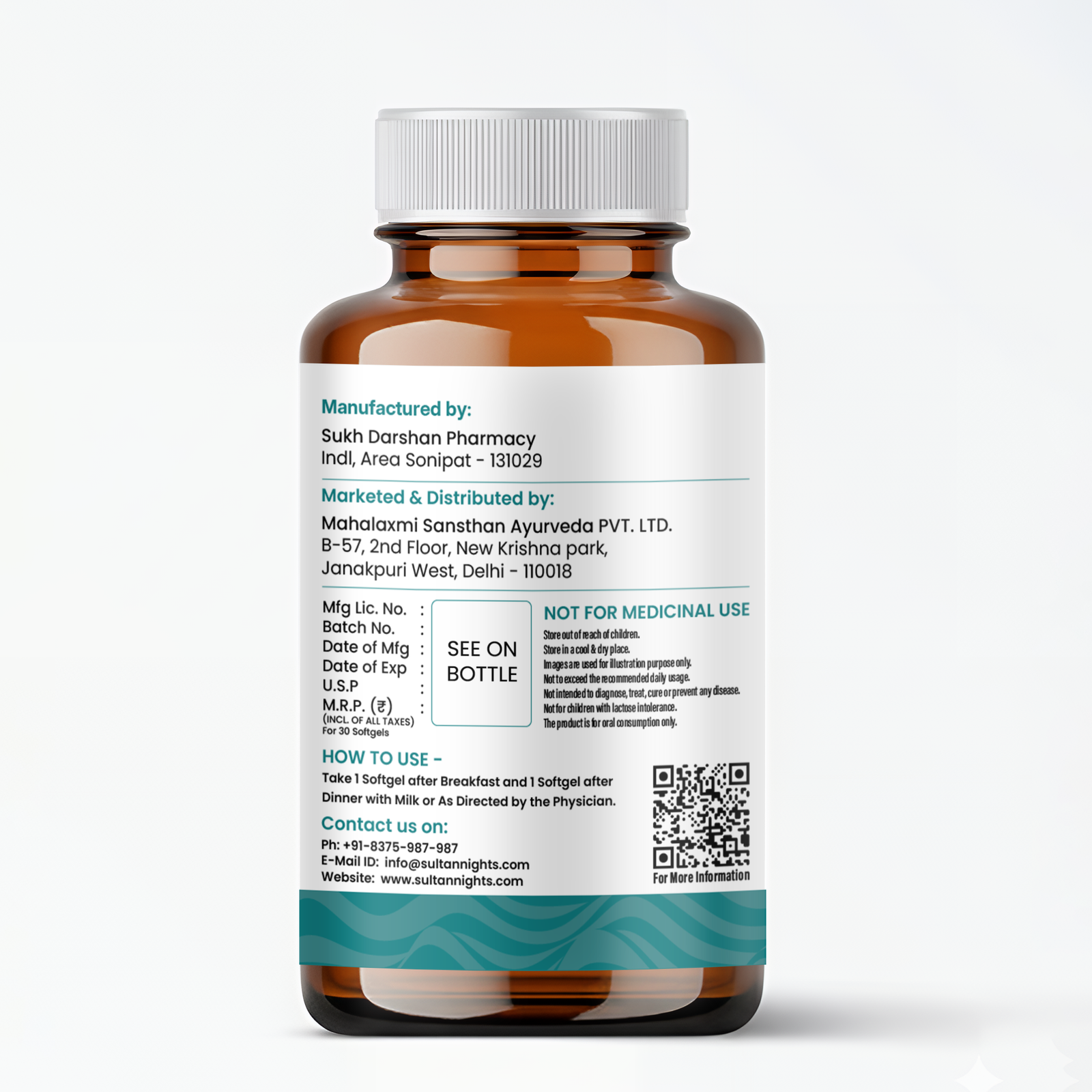 Sultan Night Fish Oil is an ayurvedic  capsule extracted from the source  of  Sardine Fish.  This oil is built up with a soft gelatin.  It is filed with Omega 3 Fatty Acids that support overall health. It reduces cholesterol to maintain heart functions. Strengthen your bones and muscles.