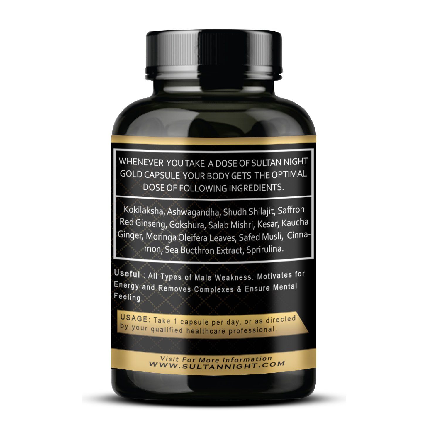 Sultan Night Gold Capsule – Ayurvedic Formula for Energy, Stamina & Physical Strength (30 Capsules)