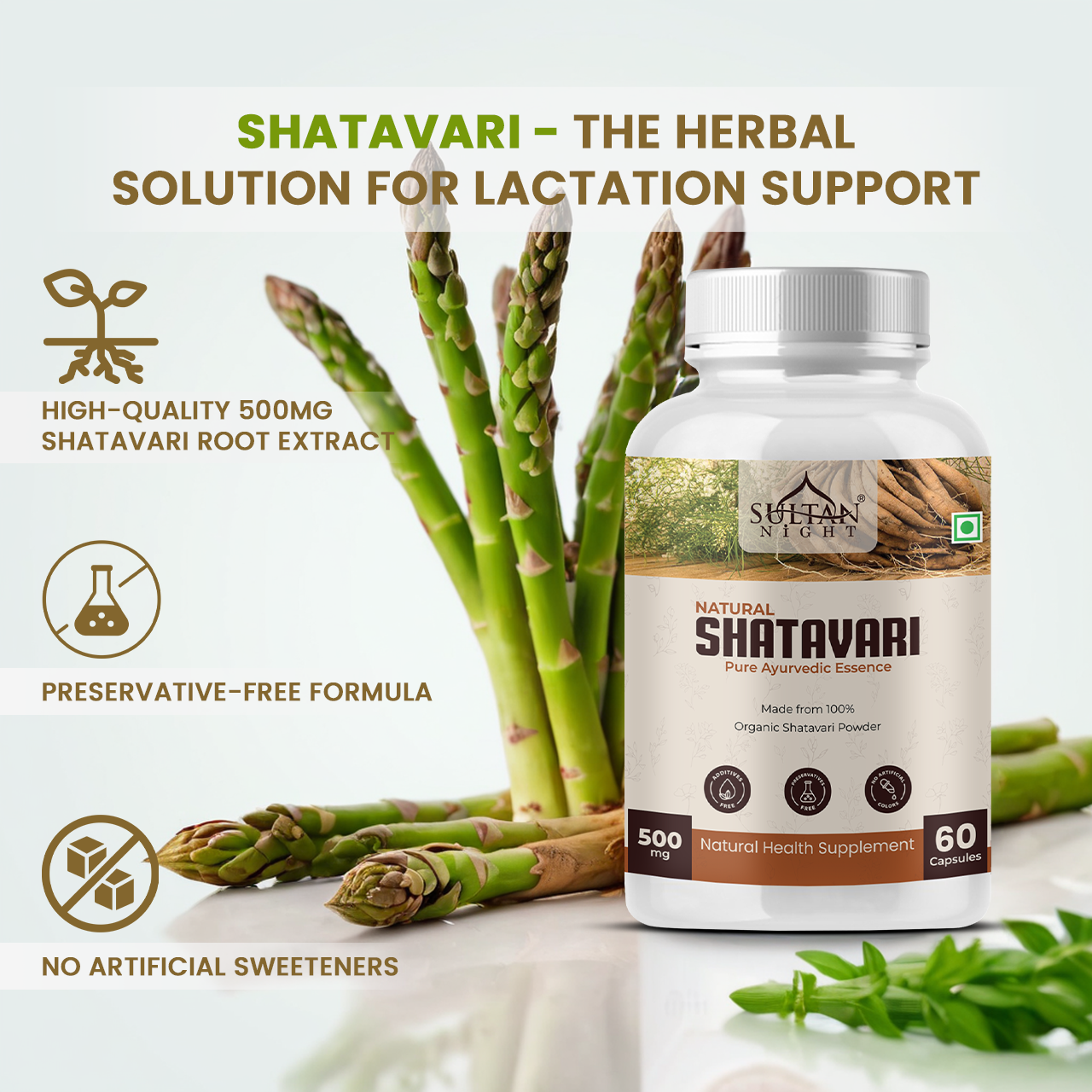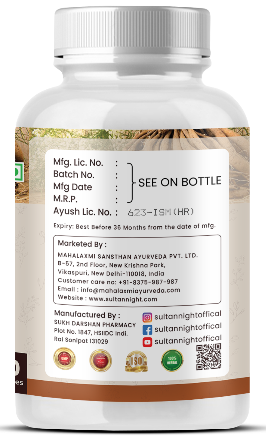 Sultan Night shatavari capsules originate from Shatavari roots. Formulated with natural and advanced methods, with no harsh chemicals, impurities and other preservatives.