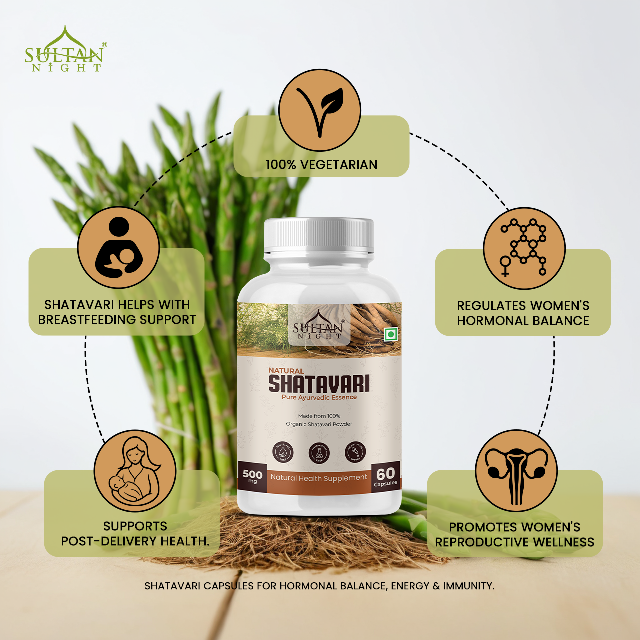 Sultan Night Shatavari Capsule : Restore Hormone | Alleviate Stress | Rejuvenate Body | Longstanding Wellness