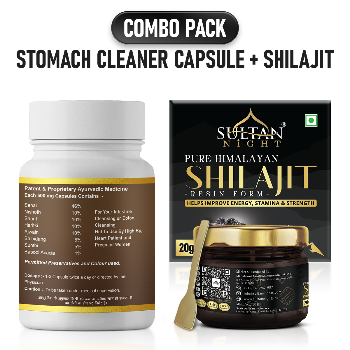 Sultan Night Stomach Cleaner + Shilajit Combo : Upgrade digestion | Reduce constipation | Intestine Cleaner | Relive gastric problems